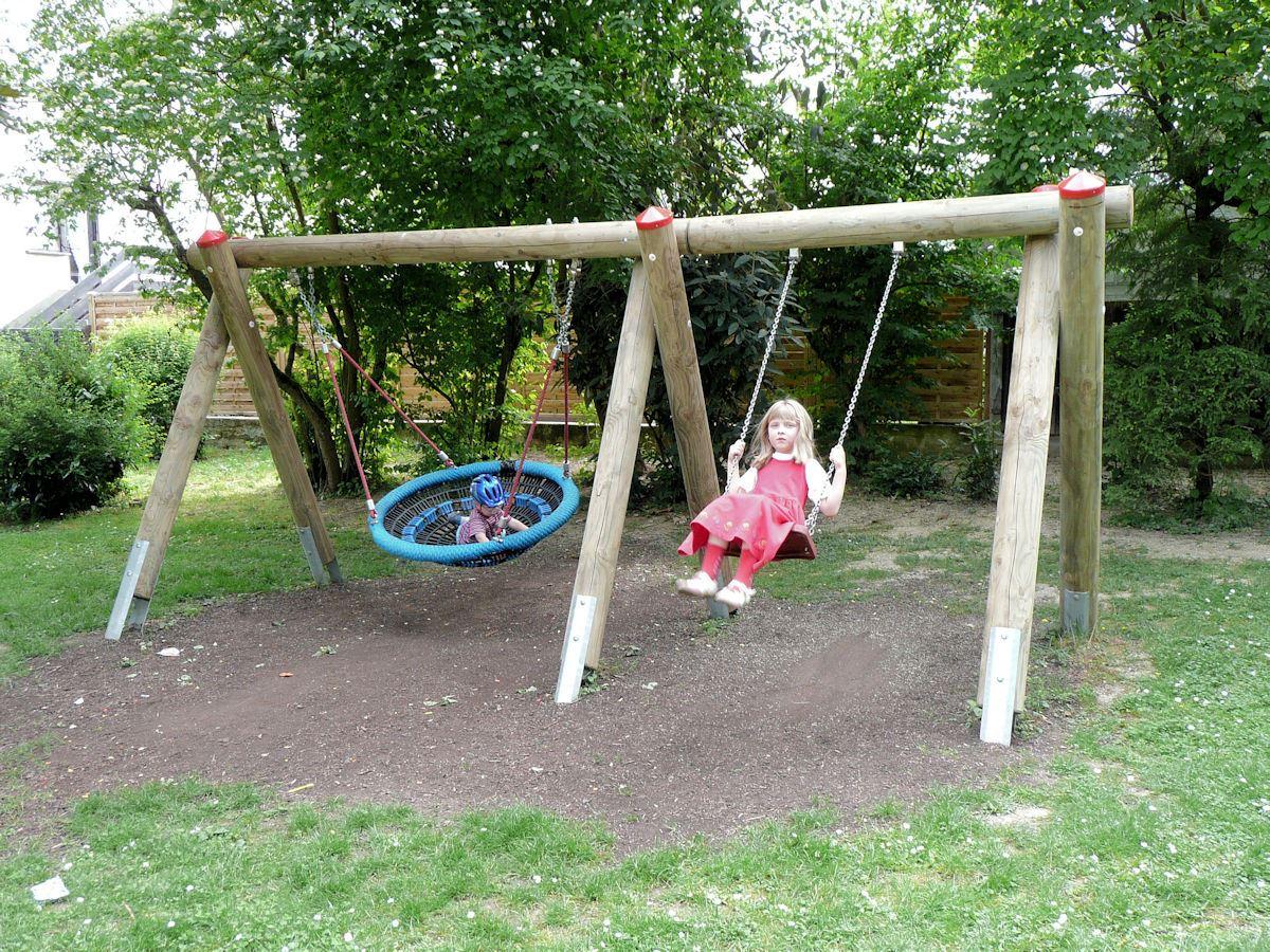 Ist ausreichend Platz in einem Kindergarten, Schule, Spielplatzgelände vorhanden, so ist die Kombination einer Nestschaukel mit einer weiteren Schaukelmöglichkeit (Brettschaukel, Kleinkindersitz, Behindertensitz) eine hervorragende Idee.
