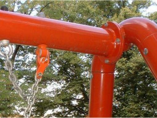 Die Gestell-Konstruktion einer guten Nestschaukel aus Stahl besteht aus Stahlrohren in verzinkter Ausführung. Aus ästhetischen Gründen werden die Stahlrohre farbig gestrichen. Die Kinder sollten nicht das Gefühl haben, in einer Fabrikhalle zu spielen!